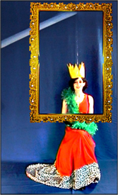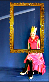 KÖNIGIN UTOPIA: ihr Haar ist blond, ihr Kleid pink. Die Schuhe gold, passend zur Krone. Sie fährt nie selber und reist incognita. Kräfte: Paradiesfühligkeit. Zauberspruch „GRÜN!“.